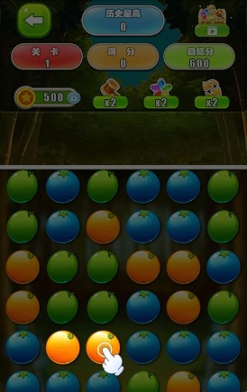 1、点击颜色相同且相邻的水果即可进行消除。