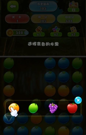 3、当消除遇到瓶颈的时候可以点击七色花道具,选择要变色的水果就能让水果变成相同的颜色消除。