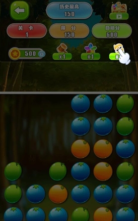 2、点击上方的道具“锤子”选择要清楚的水果,即可帮助你消除更多的水果哦。