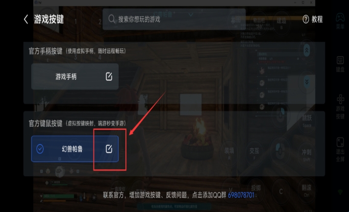 2、点击工具栏【游戏按键】,