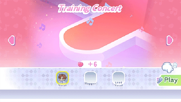 3、点击“Concert”-“play”开始他的舞台表演,需要点击屏幕收集粉丝的爱心和金币。