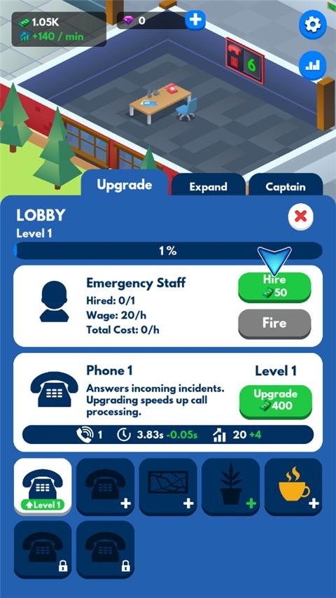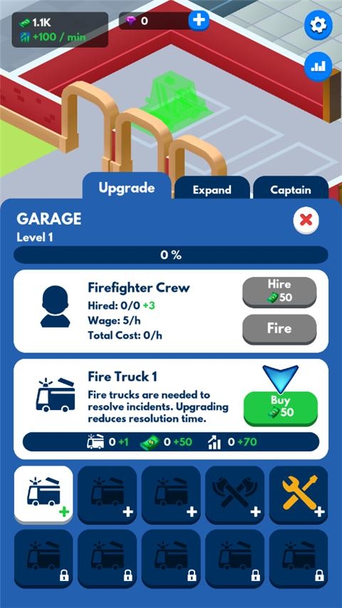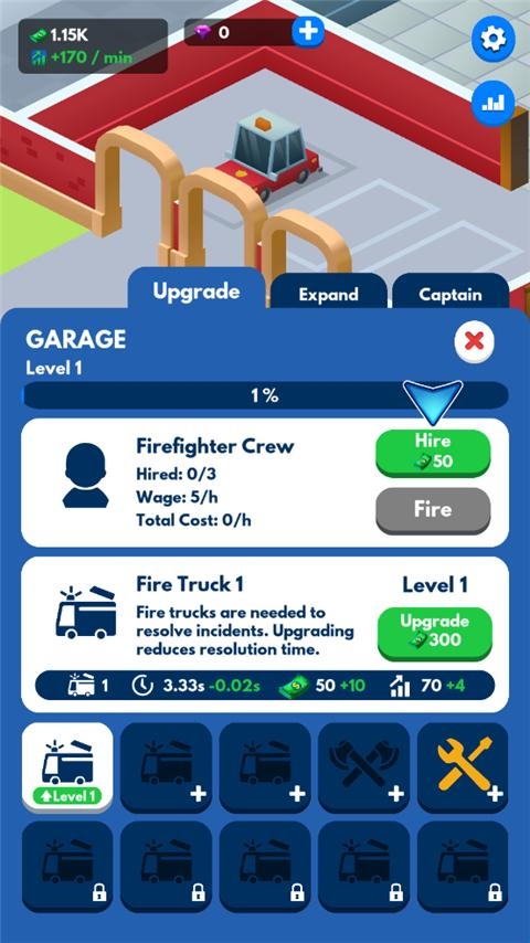 5、升级消防车和急救室,在这个金钱和消防管理模拟器中看到令人兴奋的升级!
