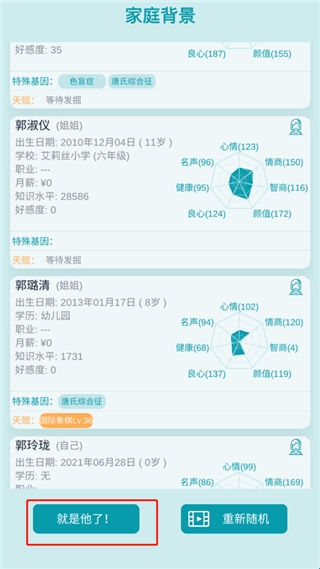 2、系统会自动为你生成家庭背景,不满意的话还可以重新随机生成;