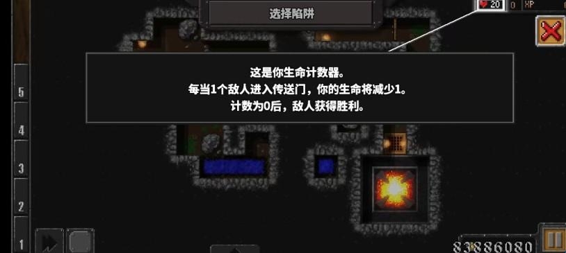 3、红色的爱心是你的生命计数器,每当一个敌人进入传送门,你的生命将减少1个,当计数为0后,敌人将获得胜利;