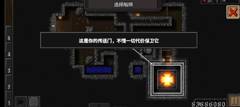 2、然后会有一段教程,可以帮助玩家更好地熟悉游戏玩法,首先是游戏的界面介绍,右下角是你的传送门,玩家要不惜一切代价保卫它,敌人会从地图的左上角进入地牢,而他们会以最短的路径冲向你的传送门;