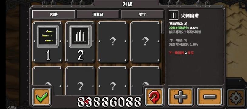 7、另外,玩家还可以花费宝石来增强陷阱的力量,而宝石可以通过等级提升或者关卡结算获得;