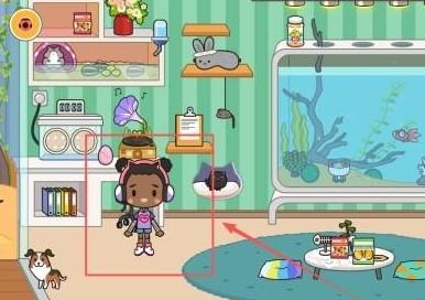 4、在120数字显示的房间里,控制女孩与黑猫、鱼缸或书架等物品进行互动,完成所有探索任务。