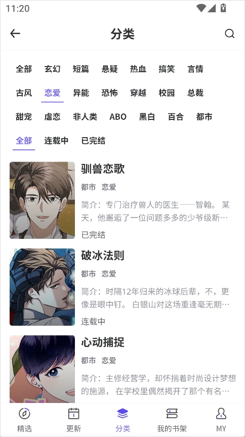分类页涵盖玄幻、恋爱、恐怖、校园、穿越等多种类型,用户可按标签快速定位想看的作品,找到小众或冷门佳作也不再困难。