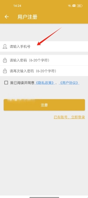 3、输入您的手机号码,并设置登录密码,完成账号注册。
