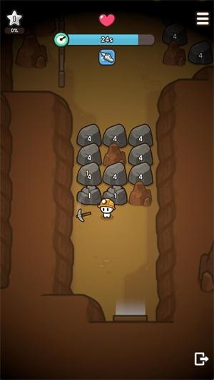 矿工出击是一款模拟挖矿玩法的游戏,玩家扮演矿工进入矿洞使用镐子不断地挖掘,进入后会有时间限制在有限的时间内努力的收集矿石,返回村庄解锁更多区域发展村庄,招募助手辅助自己提升能力,升级锻造更多类型的武器和装备以便深入探索,随机性很强矿洞中存在着机遇和危险,不断地探索击败BOSS带回更多宝藏吧。