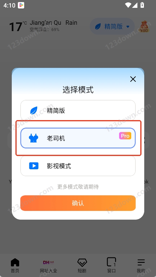 4、选择你想要切换的模式,点击下方的“确认”即可快速切换模式
