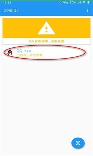 5、接着点击“已就绪,点击安装”或者“QQ状态异常,点击处理”,会重新安装创建的QQ。
