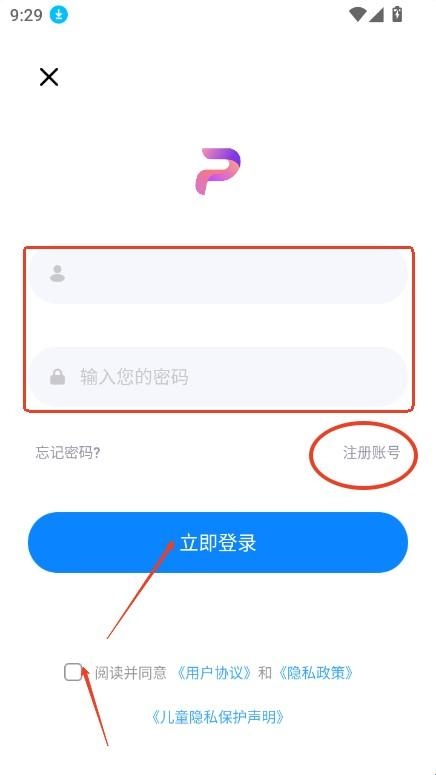 进入登录界面,输入账号密码,点击登录,或者直接点击下方注册