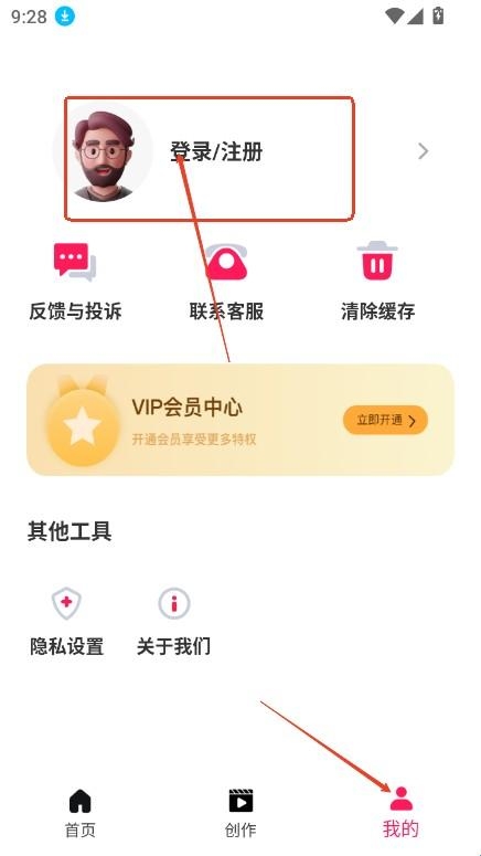 进入我的,点击登录注册