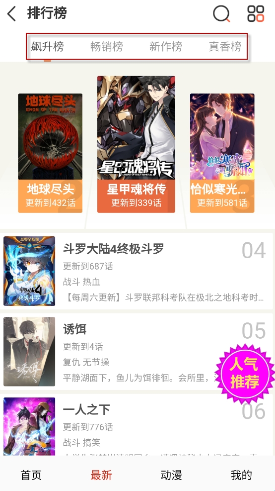 3、更新及时同步:与漫画官方发布渠道实时同步,热门连载章节24小时内更新,确保用户第一时间获取最新剧情发展。每日还会智能推送热门榜单和编辑精选内容。