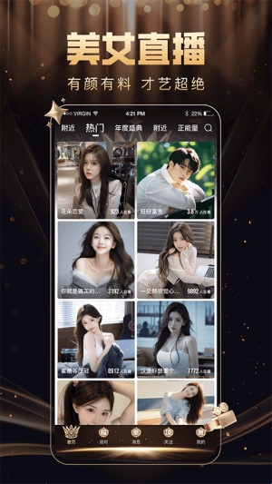 2、聚集海量主播资源包含多样个人风格与才艺类型满足不同用户偏好与观看需求。