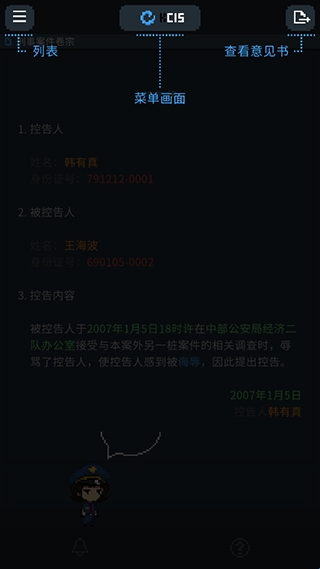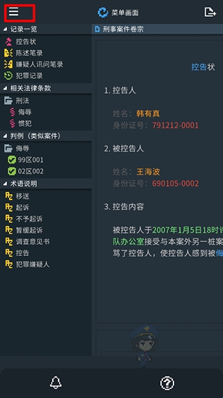 律法之地手机版是一款独特的角色扮演游戏,玩家将扮演警方撰写调查卷宗的角色。在游戏中,玩家需要阅读涉及盗窃、谋杀等多起案件的调查卷宗,根据法律条款和判例来撰写最终的调查意见。在律法之地游戏中,玩家将面临各种复杂的案件,需要仔细搜集相关证据和线索,理清案件的始末,以便正确归纳案情并做出合理的调查结论。