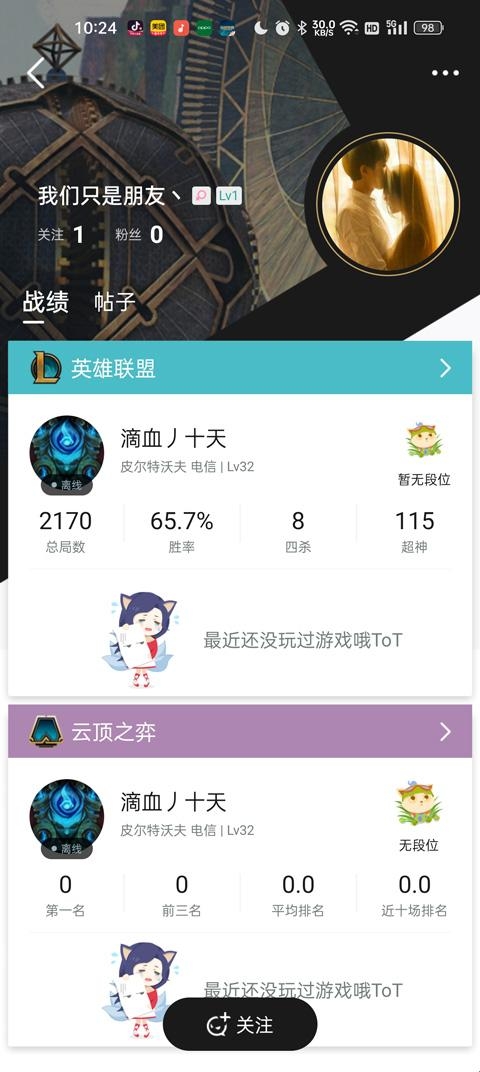 3、全新个人信息主页,设置个性化头像和签名,做个真英雄!随时了解自己或他人的战绩情况。