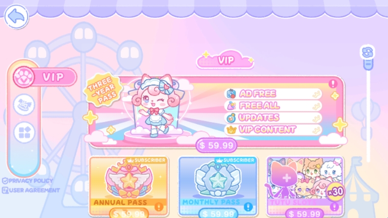 2、服装店展示了各种漂亮的衣服和可爱的配饰。选择自己的风格,自由组合,每天都变成一种不同风格的可爱公主!