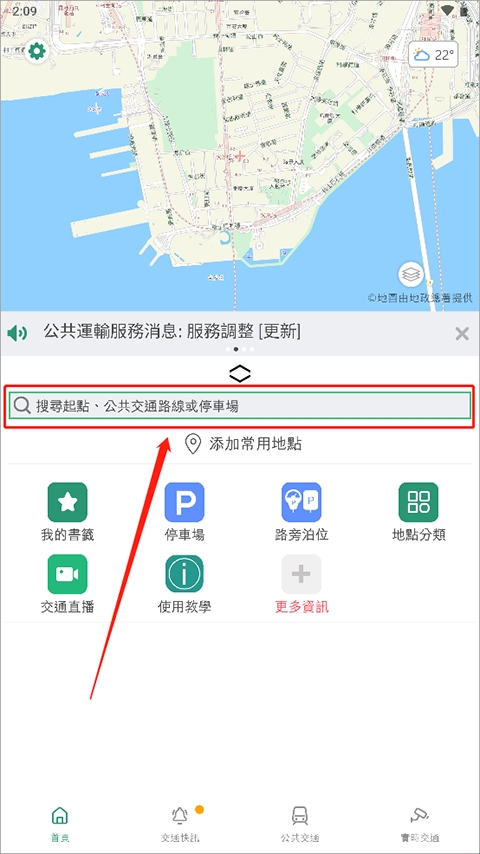 1、在地图上搜寻个别路线、特别服务路线及附近路线