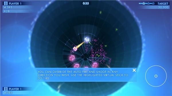 5、增加子弹能量,大面积的子弹攻击明显比一个两个的要好的多,这个是奖励的子弹攻击,玩家在游戏中只要注意对消除掉的几何体掉下来的绿色水晶进行搜集就可以激活这个技能了。