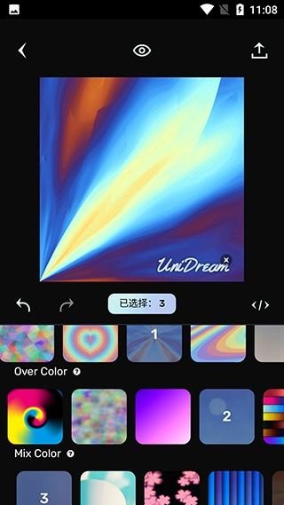3、可以叠加多种艺术效果,选好后点击图片上方小眼睛图标可以预览效果,点击右上角保存或者分享作品。